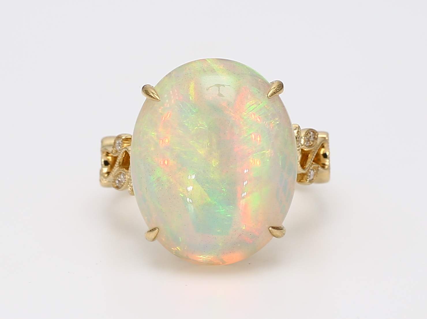 OVAL OPAL & ROUND DIAMOND 14KY RING