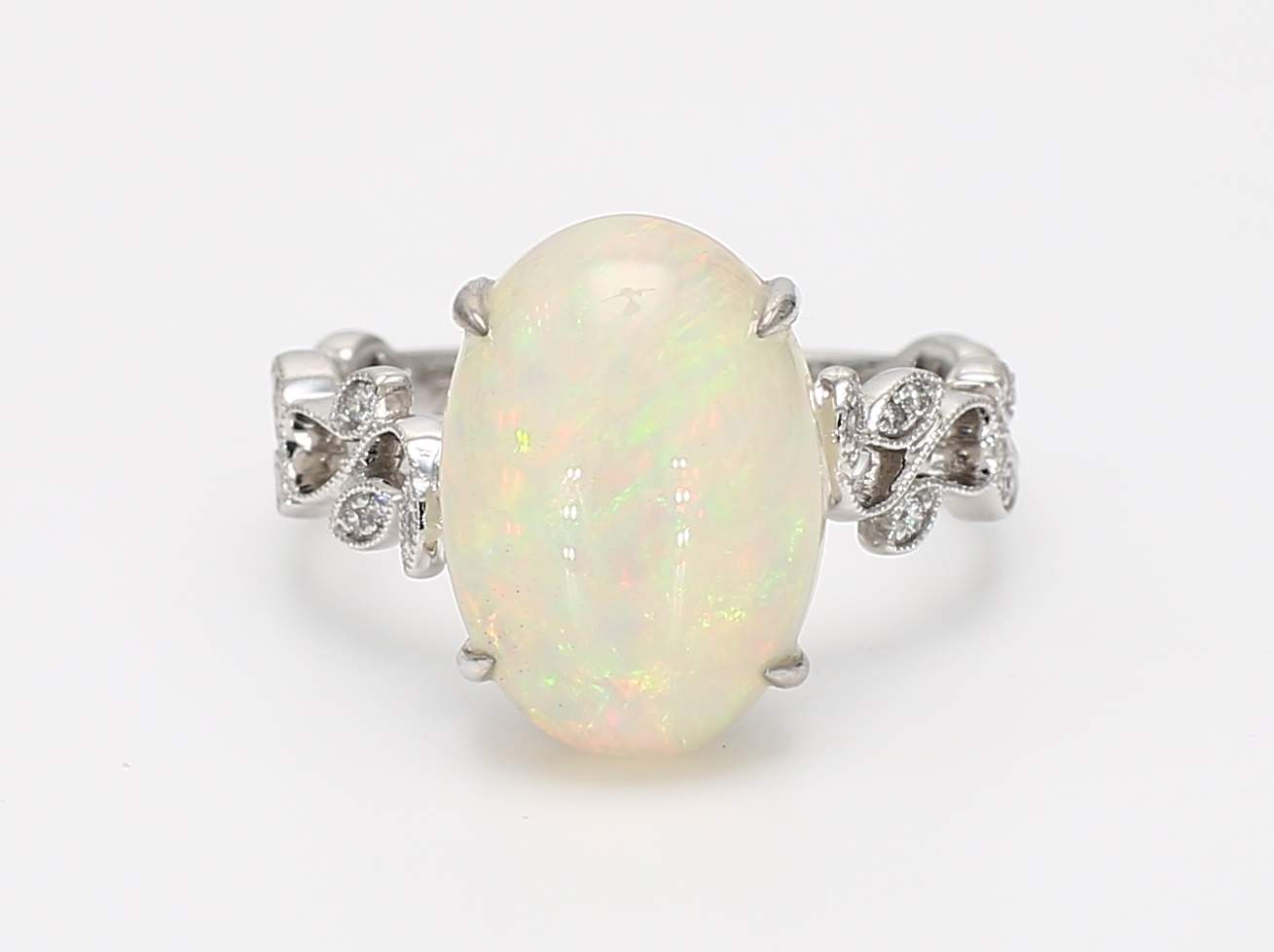 OVAL OPAL & ROUND DIAMOND 14KW RING