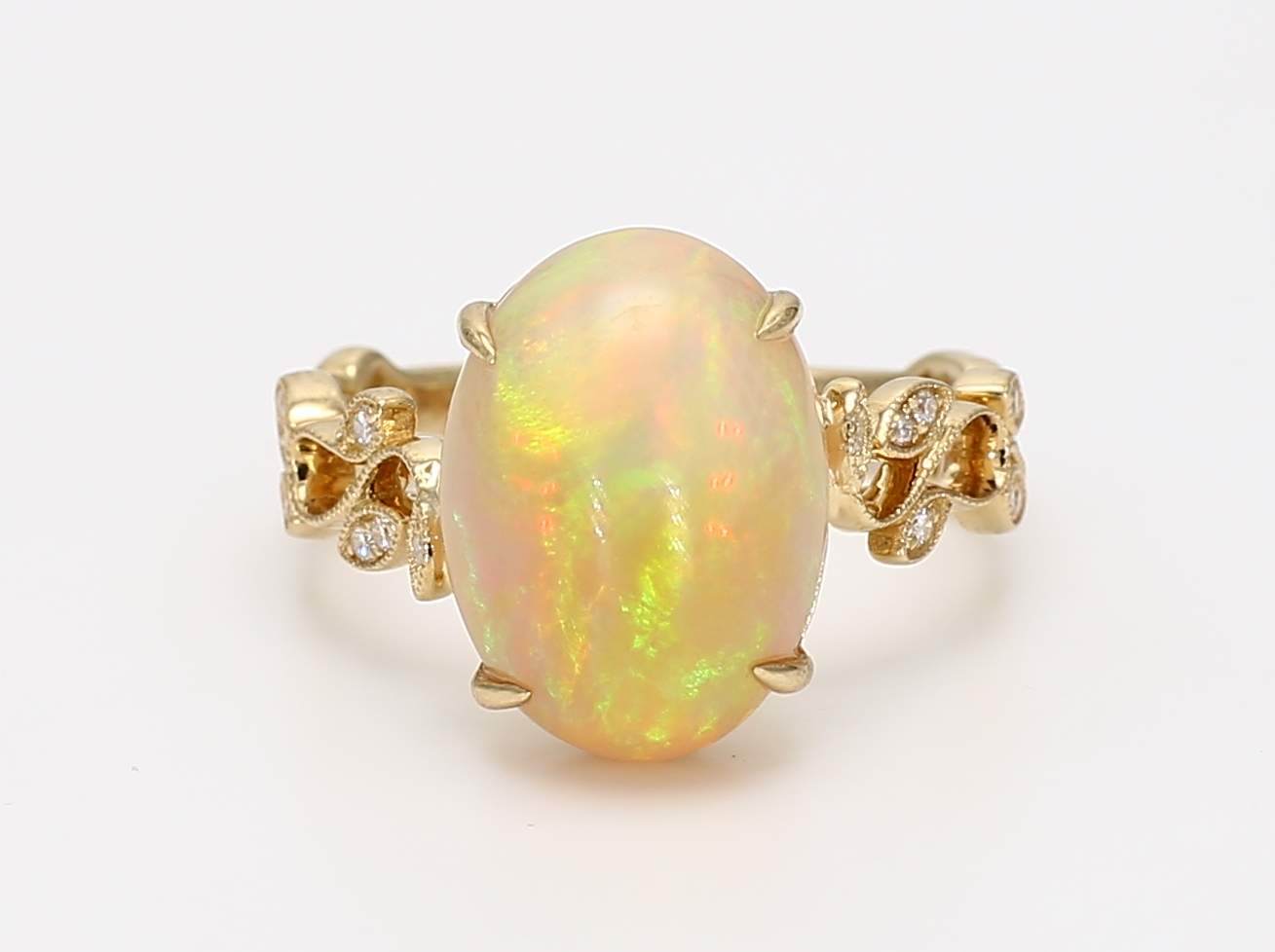 OVAL OPAL & ROUND DIAMOND 14KY RING