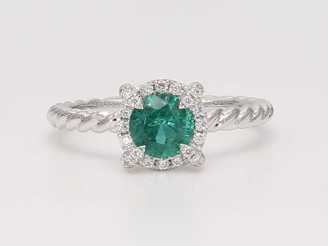 ROUND EMERALD & ROUND DIAMOND 14KW RING