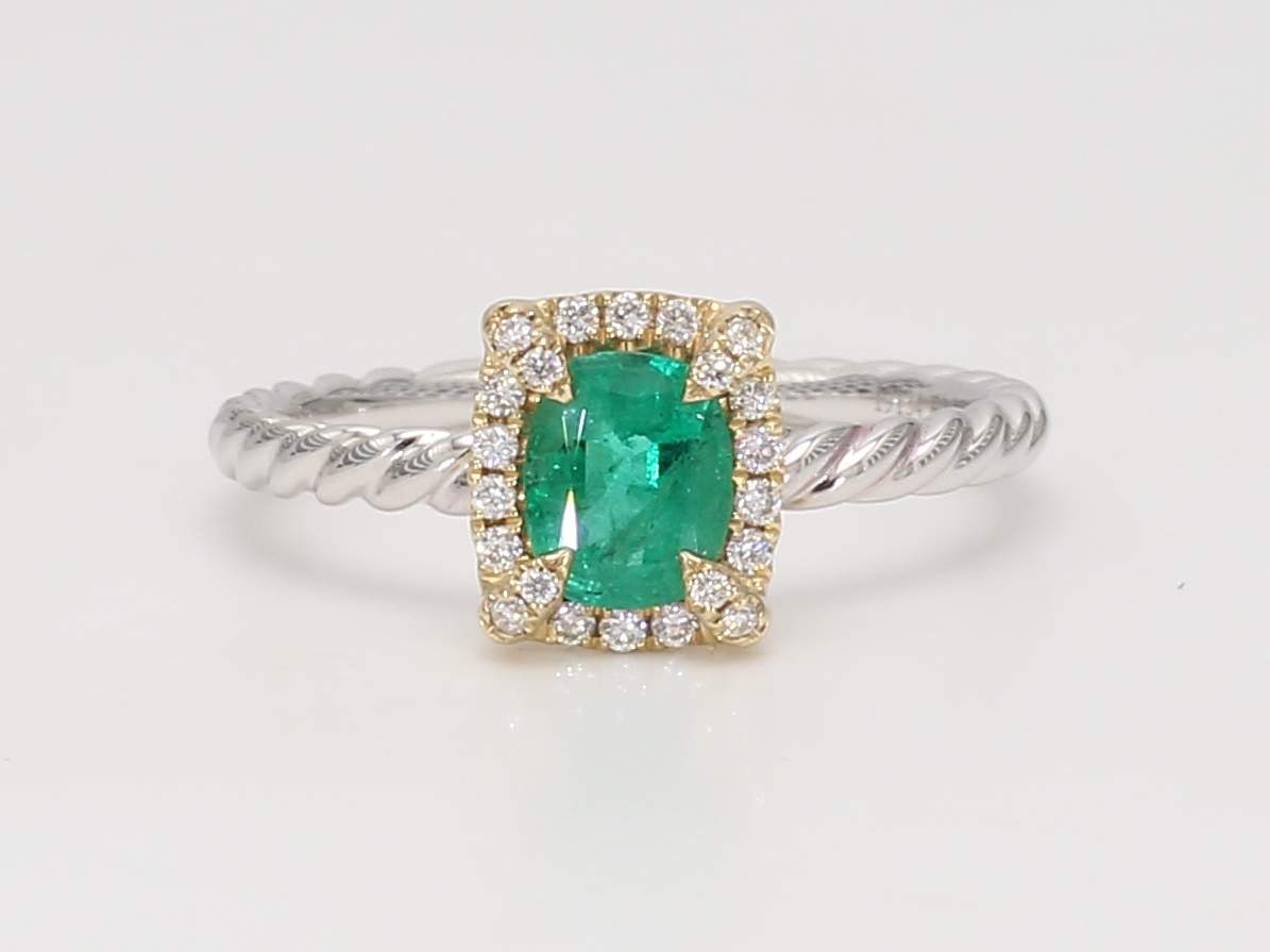 CUSHION EMERALD & ROUND DIAMOND 14KT RING