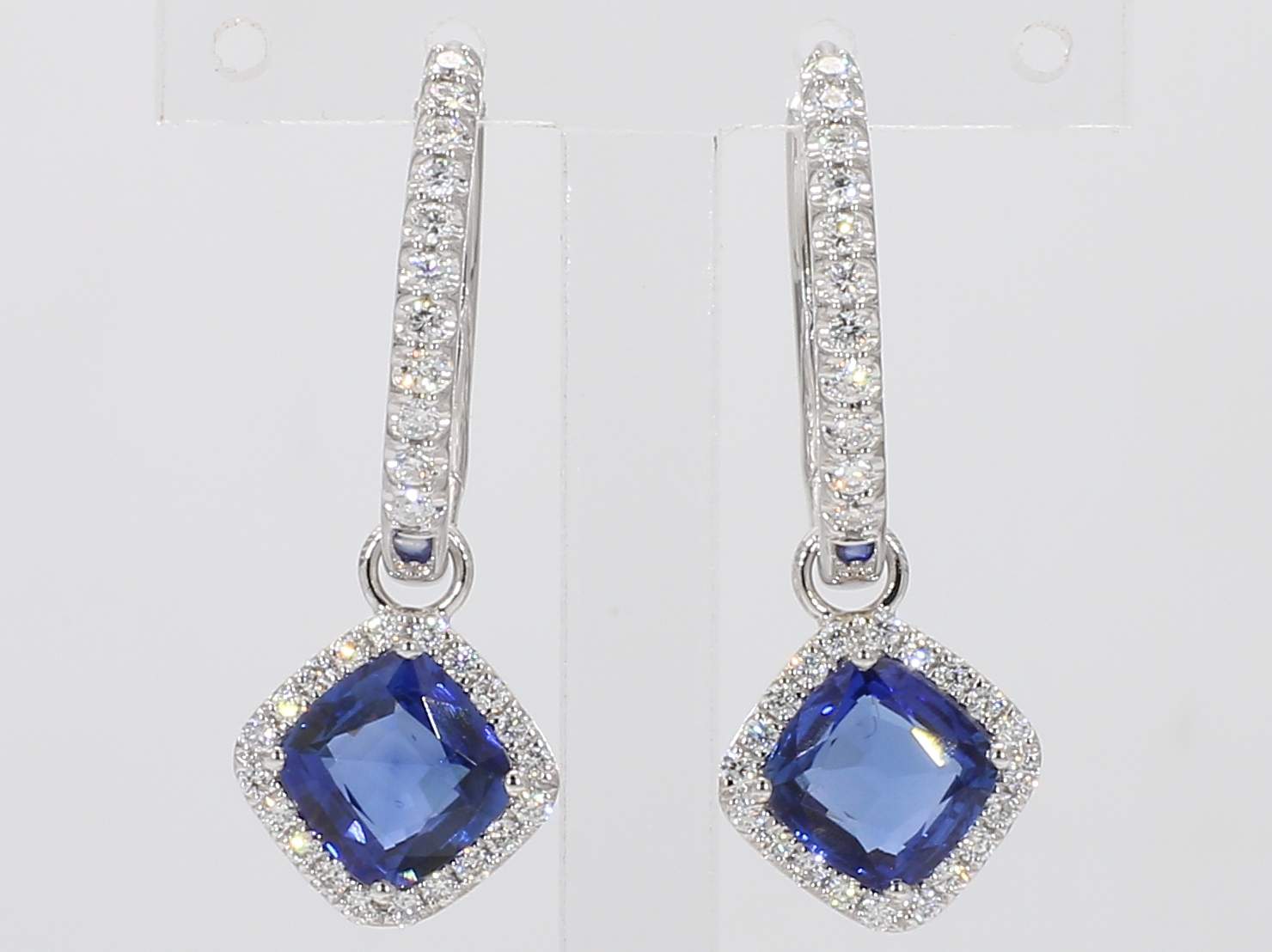 CUSHION SAPPHIRE & ROUND DIAMOND 14KW EARRING
