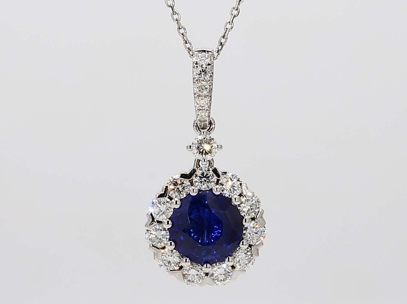 ROUND SAPPHIRE CDC 2206151 & ROUND DIAMOND 18KW PENDANT