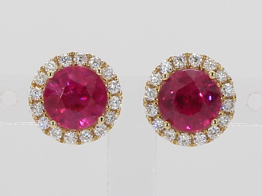ROUND RUBY & ROUND DIAMOND 18KY EARRING