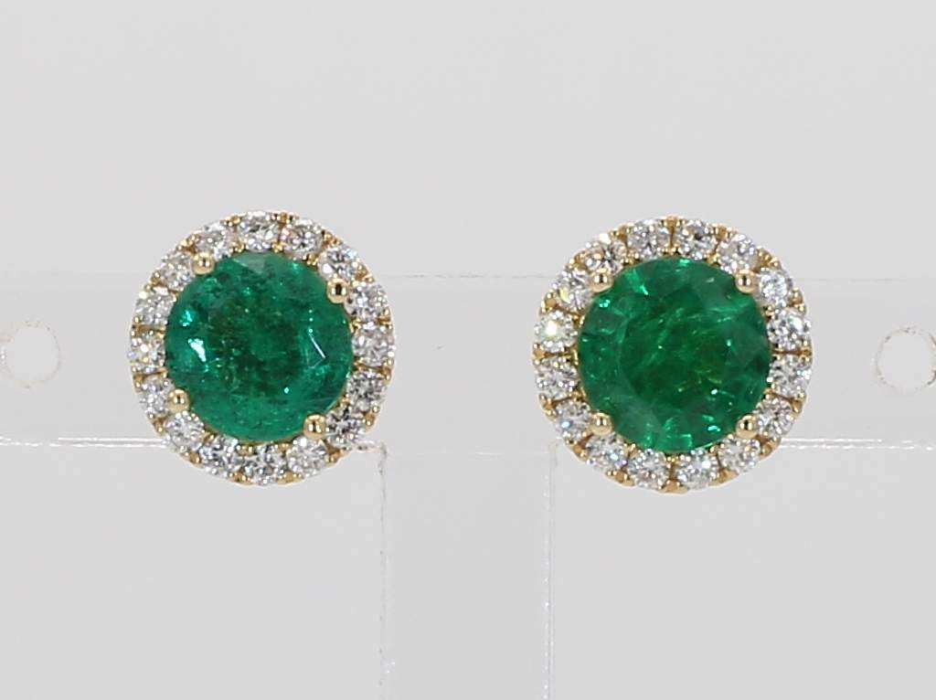 ROUND EMERALD & ROUND DIAMOND 18KY EARRING