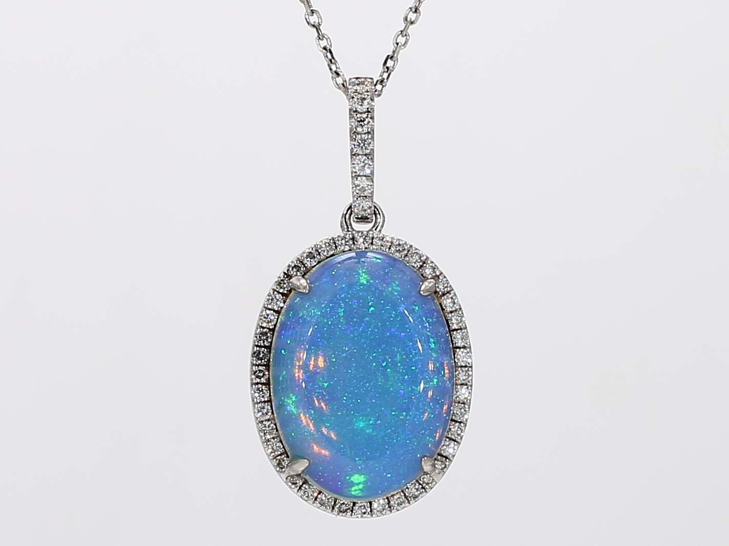 OVAL OPAL & ROUND DIAMOND 14KW PENDANT
