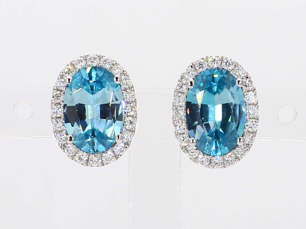 OVAL BLUE ZIRCON & ROUND DIAMOND 14KW EARRING