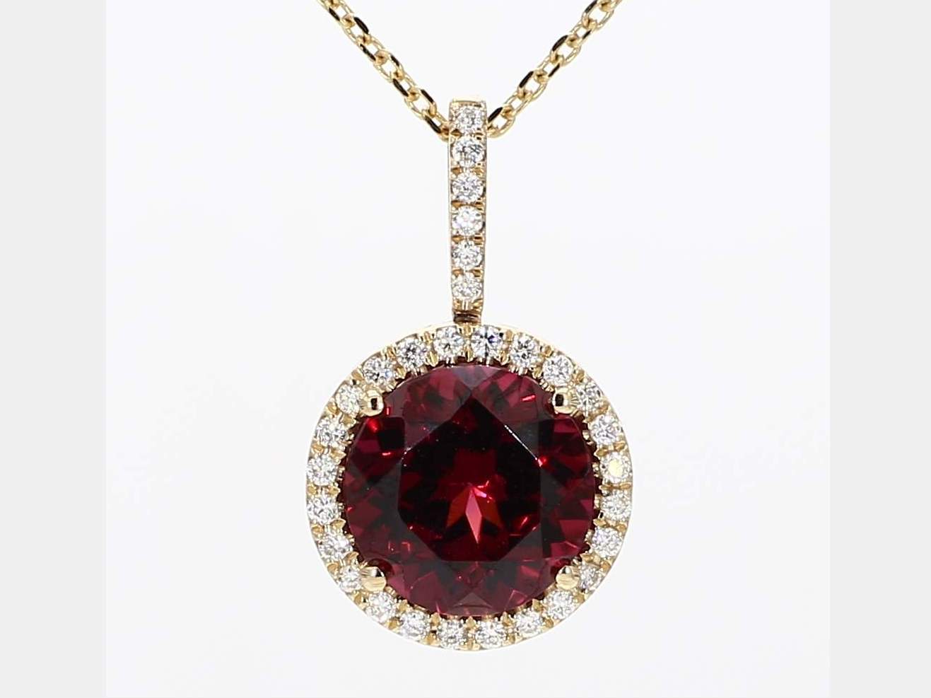 ROUND RHODOLITE GARNET & ROUND DIAMOND 14KY PENDANT