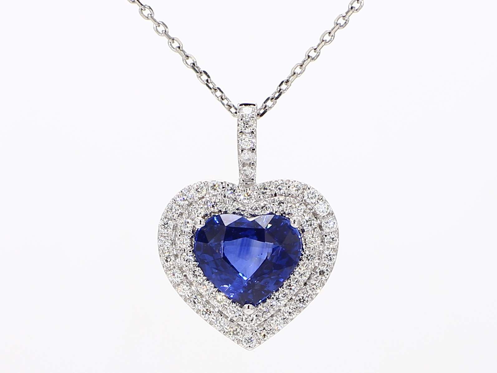 HEART SHAPE SAPPHIRE & ROUND DIAMOND 18KW PENDANT