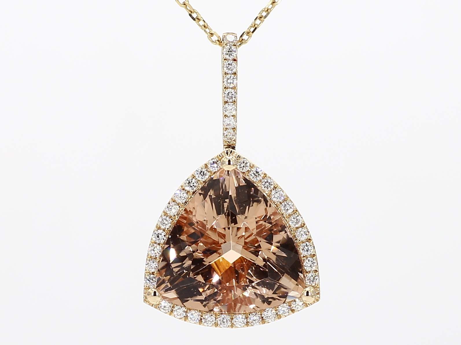 TRILLION MORGANITE & ROUND DIAMOND 14KY PENDANT