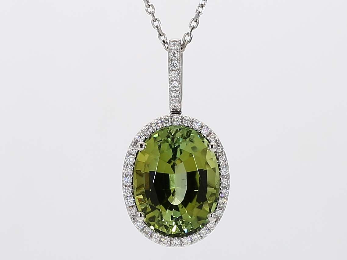 OVAL GREEN TOURMALINE & ROUND DIAMOND 14KW PENDANT
