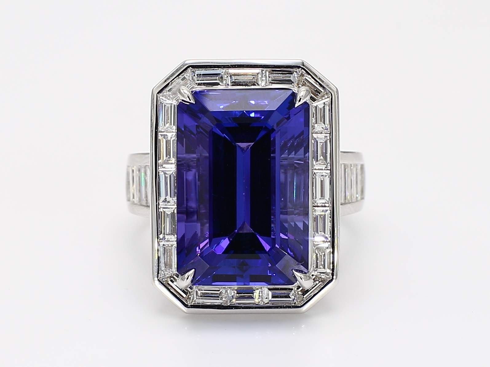 EMERALD CUT TANZANITE & BAGUETTE DIAMOND 14KW RING