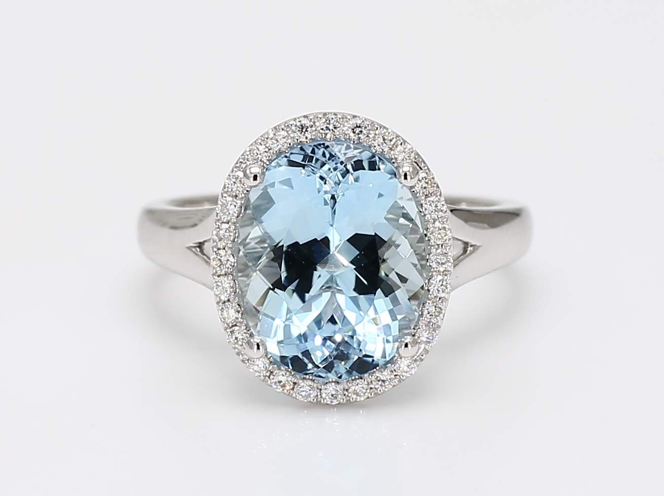 OVAL AQUAMARINE & ROUND DIAMOND 14KW RING
