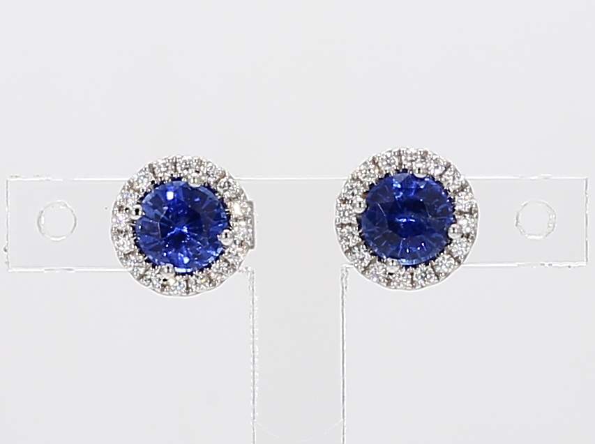ROUND SAPPHIRE & ROUND DIAMOND 14KW EARRING