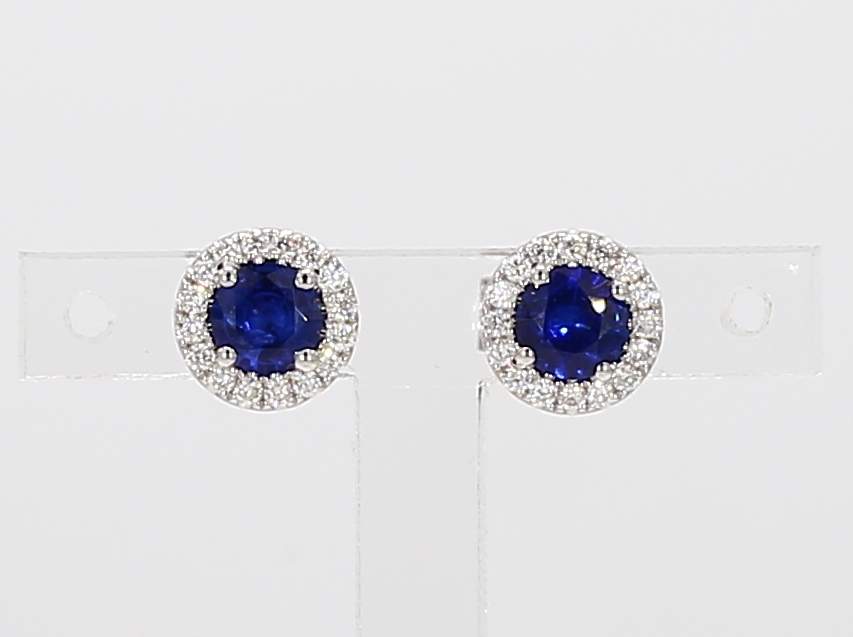 ROUND SAPPHIRE & ROUND DIAMOND 14KW EARRING
