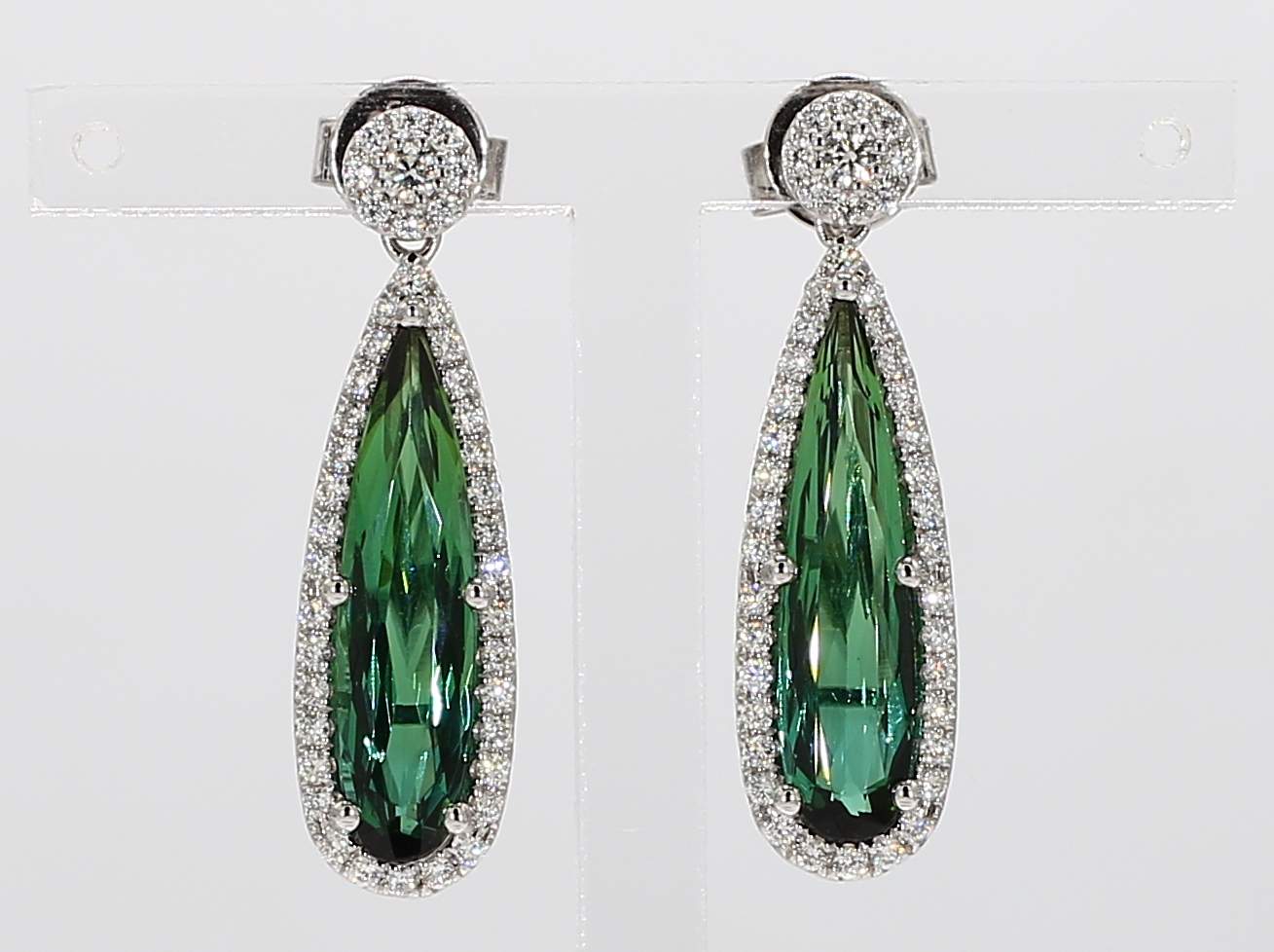 PEAR SHAPE GREEN TOURMALINE & ROUND DIAMOND 14KW EARRING