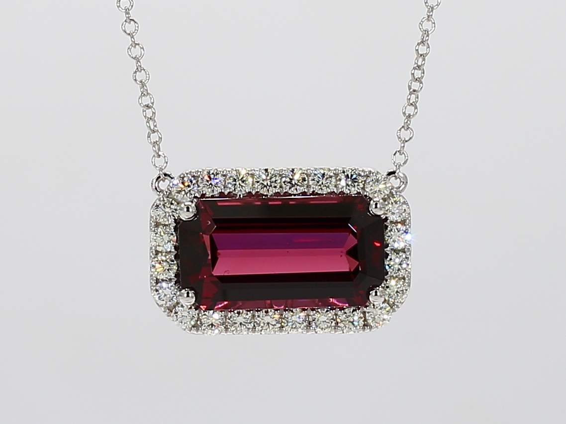 EMERALD CUT RHODOLITE GARNET & ROUND DIAMOND 14KW NECKLACE