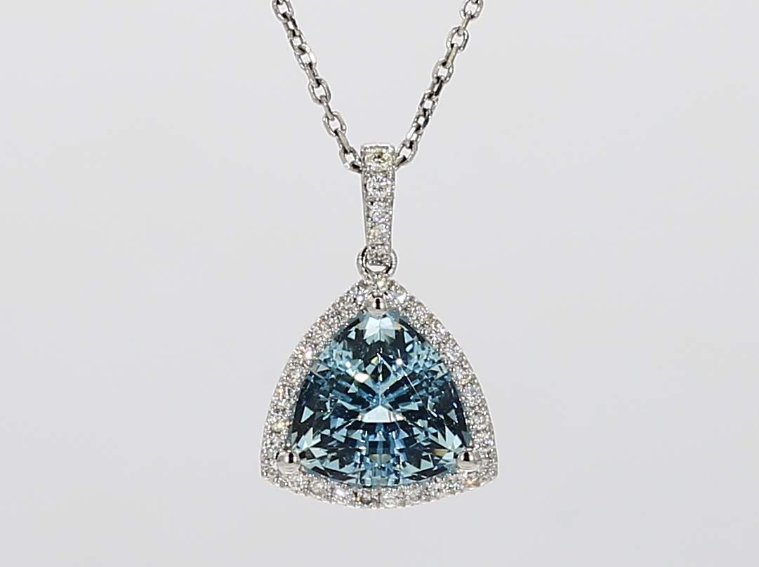 TRILLION AQUAMARINE & ROUND DIAMOND 14KW PENDANT