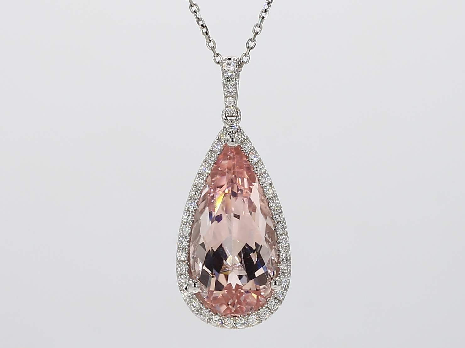 PEAR SHAPE MORGANITE & ROUND DIAMOND 14KW PENDANT