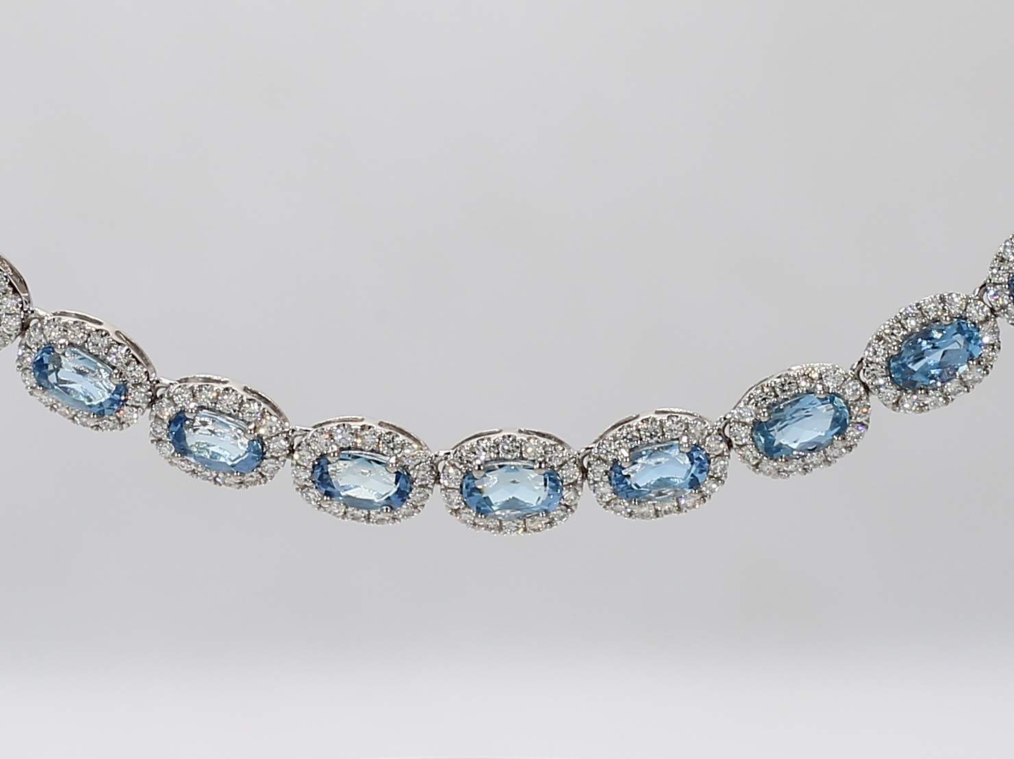 OVAL AQUAMARINE & ROUND DIAMOND 14KW NECKLACE