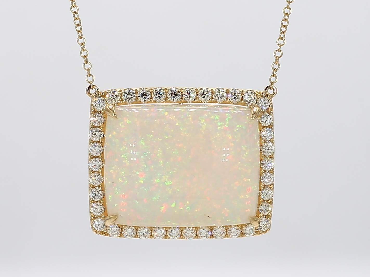 CUSHION OPAL & ROUND DIAMOND 14KY NECKLACE