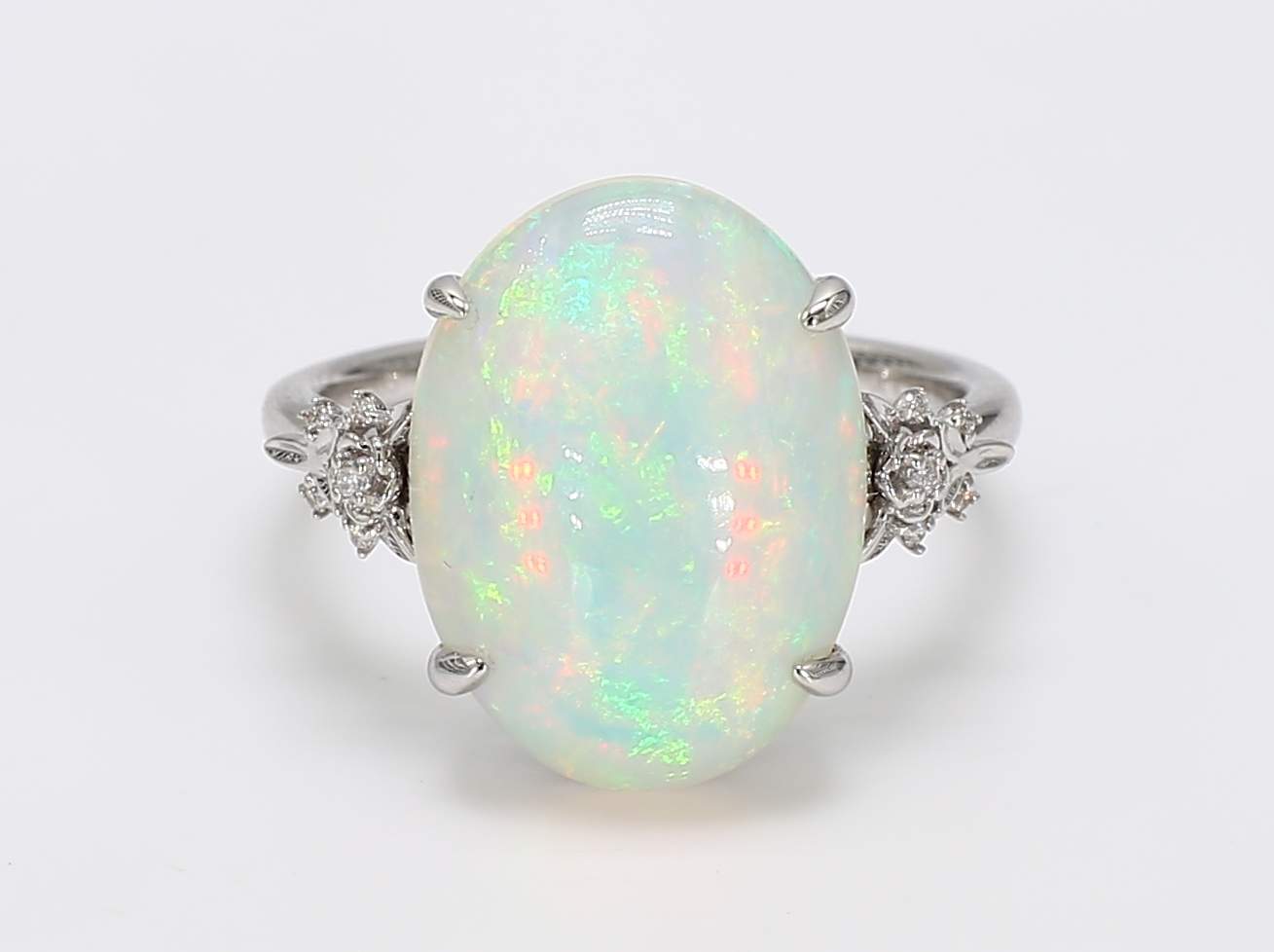 OVAL OPAL & ROUND DIAMOND 14KW RING