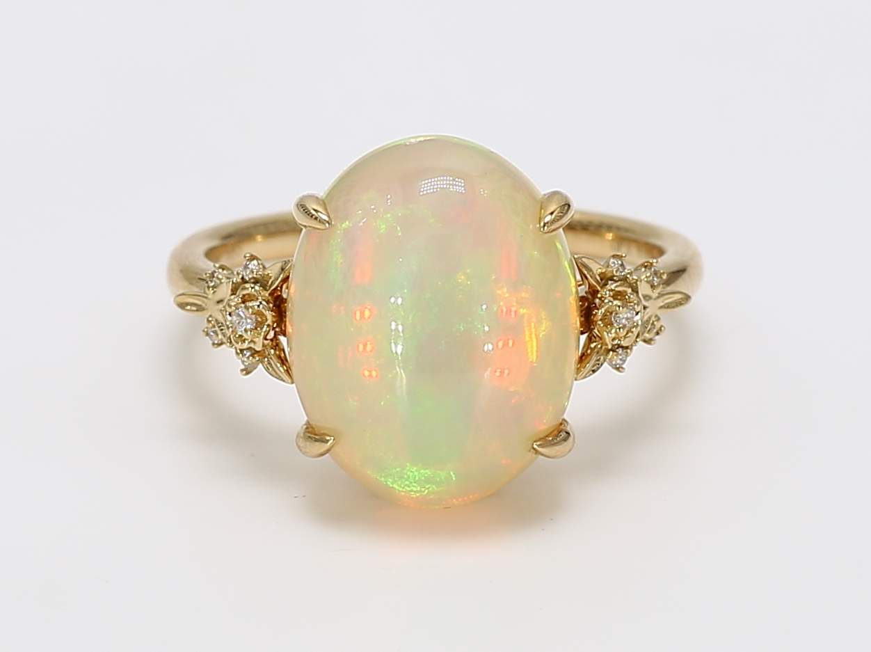 OVAL OPAL & ROUND DIAMOND 14KY RING