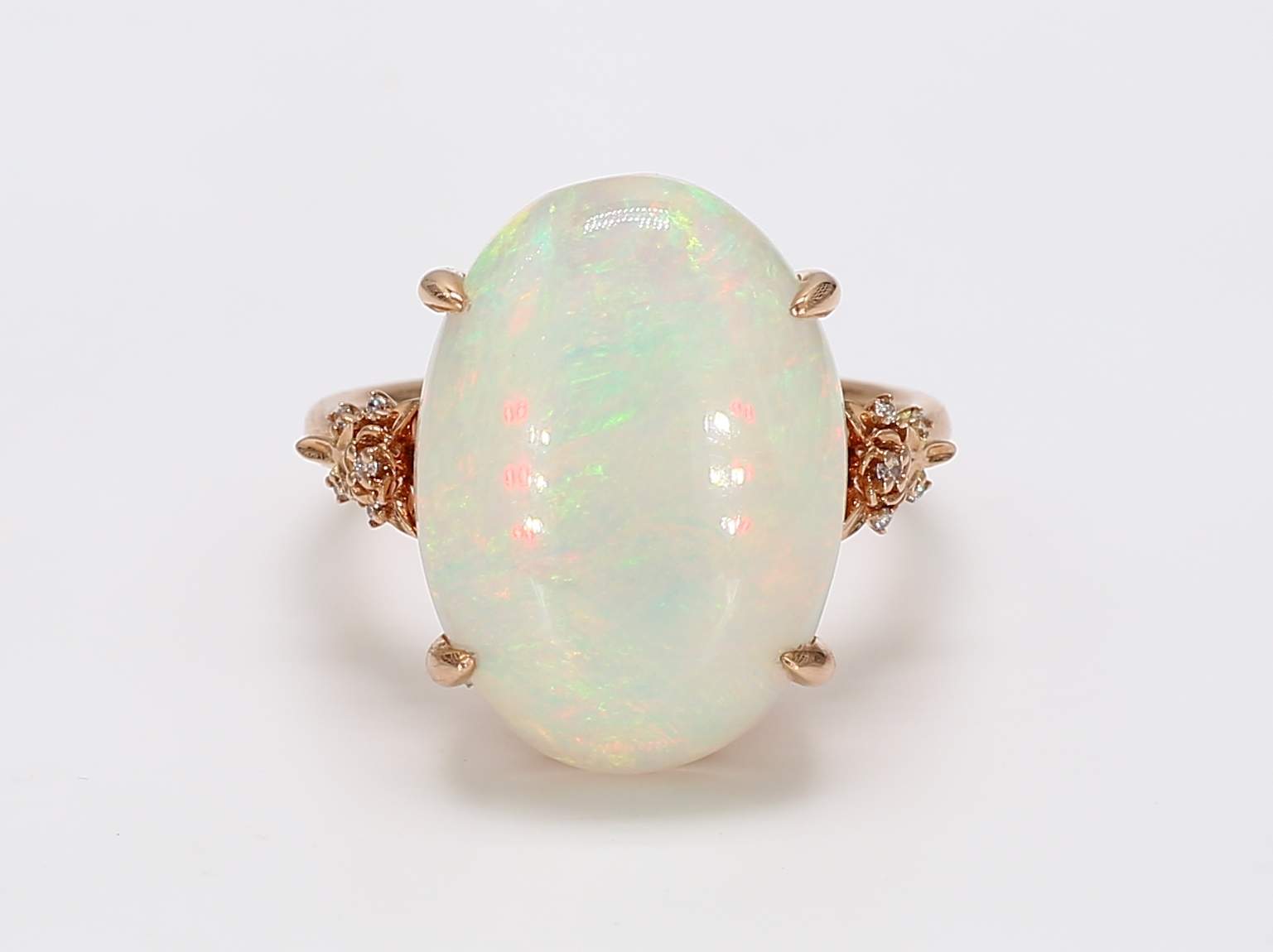 OVAL OPAL & ROUND DIAMOND 14KR RING