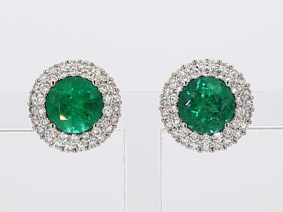 ROUND EMERALD & ROUND DIAMOND 18KW EARRING