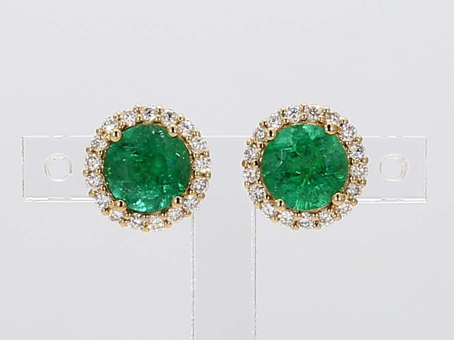 ROUND EMERALD & ROUND DIAMOND 18KY EARRING