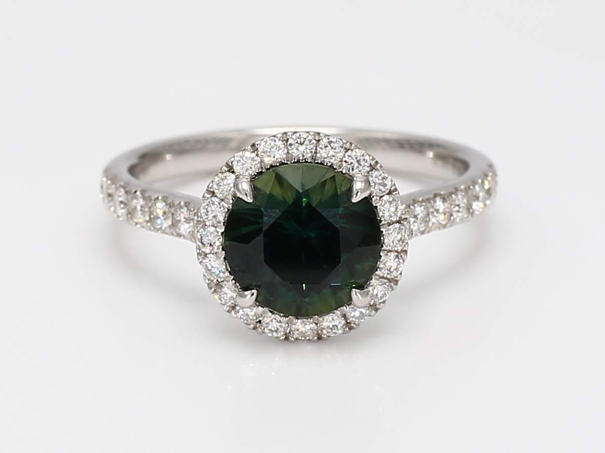 ROUND TEAL SAPPHIRE & ROUND DIAMOND 14KW RING