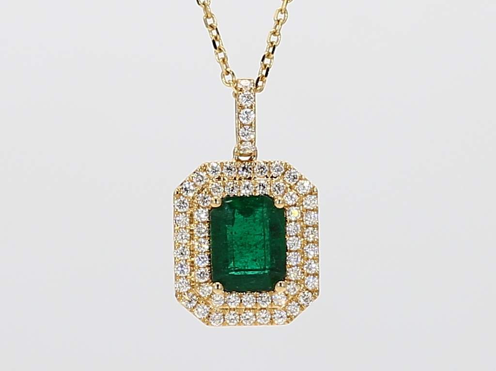EMERALD CUT EMERALD & ROUND DIAMOND 18KY PENDANT