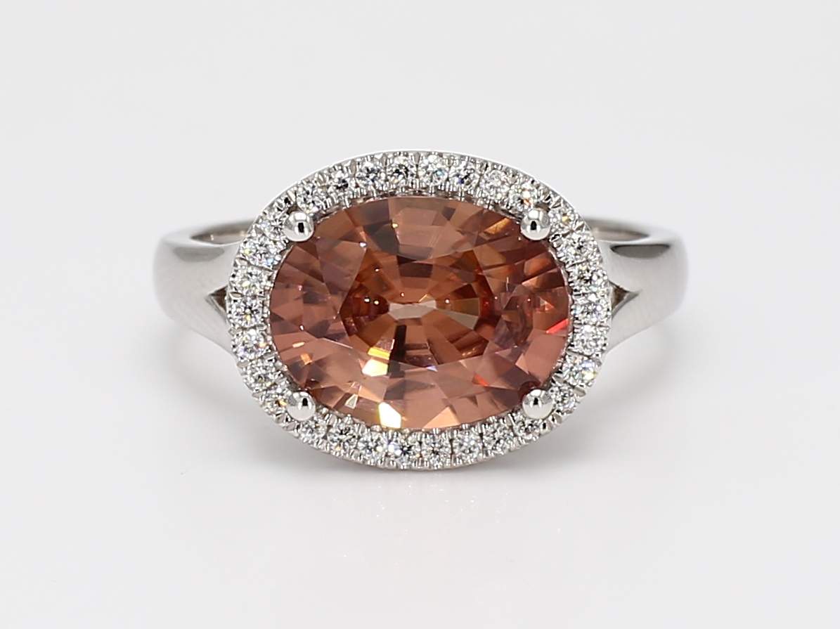 OVAL RED ZIRCON & ROUND DIAMOND 14KW RING