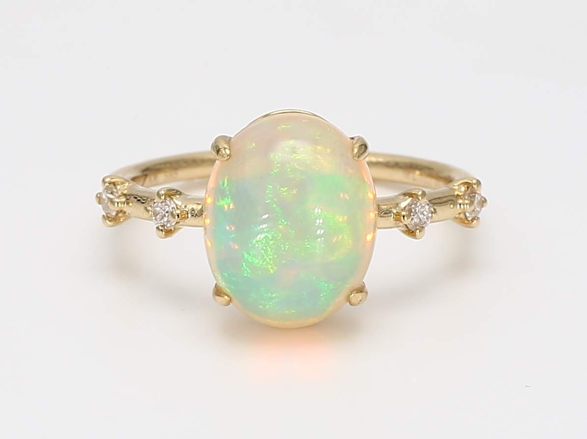 OVAL OPAL & ROUND DIAMOND 14KY RING
