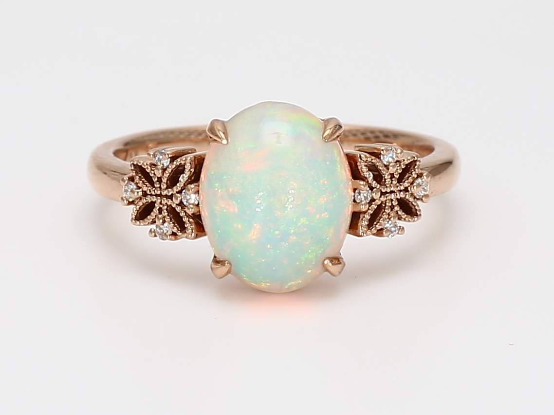 OVAL OPAL & ROUND DIAMOND 14KR RING