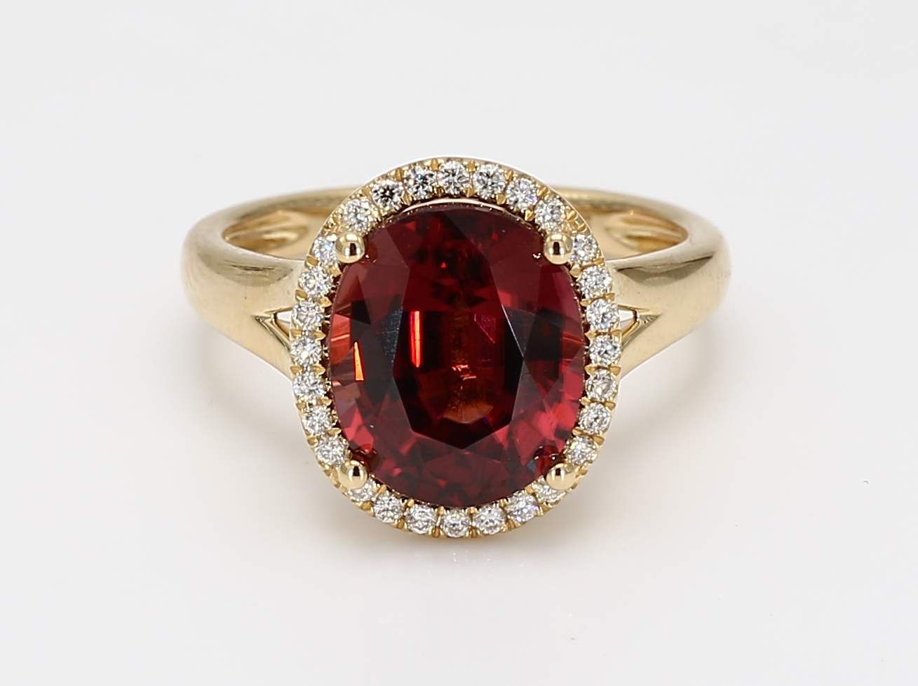 OVAL RED ZIRCON & ROUND DIAMOND 14KY RING