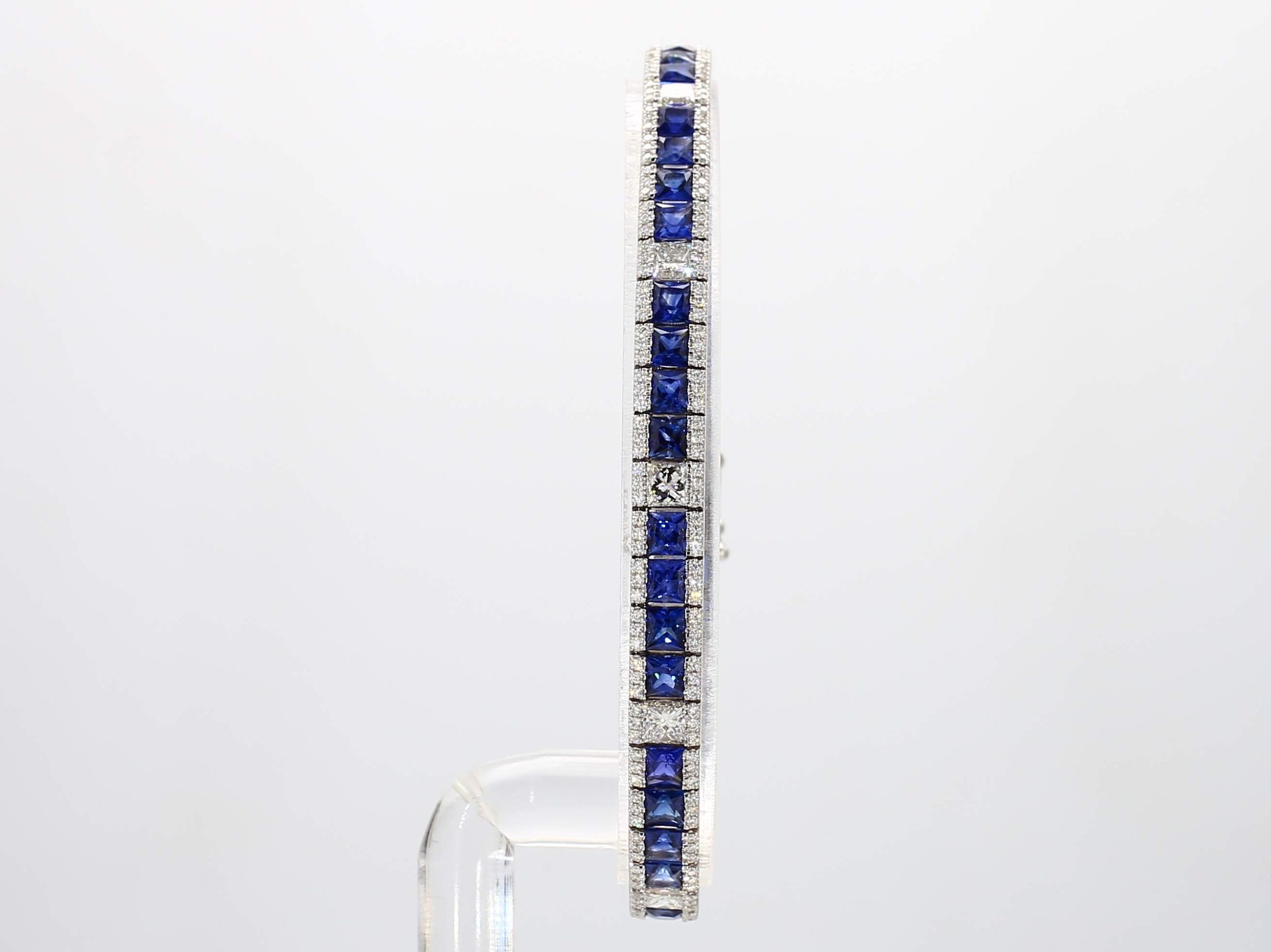 PRINCESS CUT SAPPHIRE & PRINCESS CUT & ROUND DIAMOND 14KW BRACELET