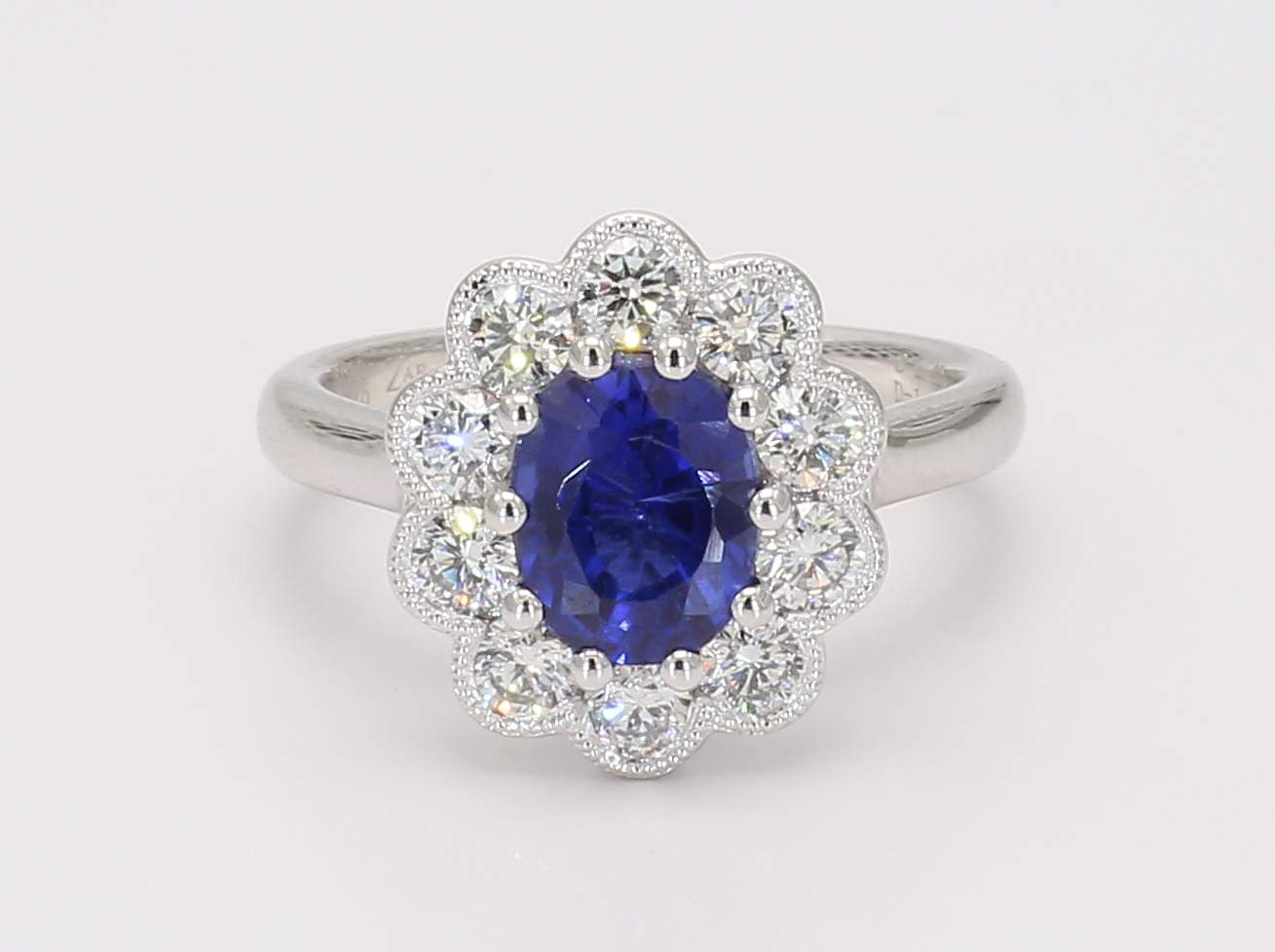 OVAL SAPPHIRE & ROUND DIAMOND PLATINUM RING