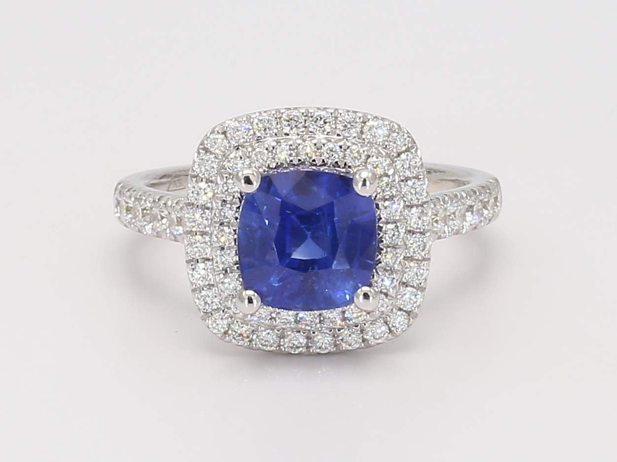 CUSHION SAPPHIRE & ROUND DIAMOND 14KW RING