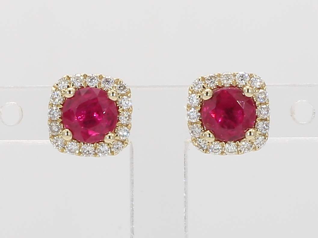 ROUND RUBY & ROUND DIAMOND 14KY EARRING