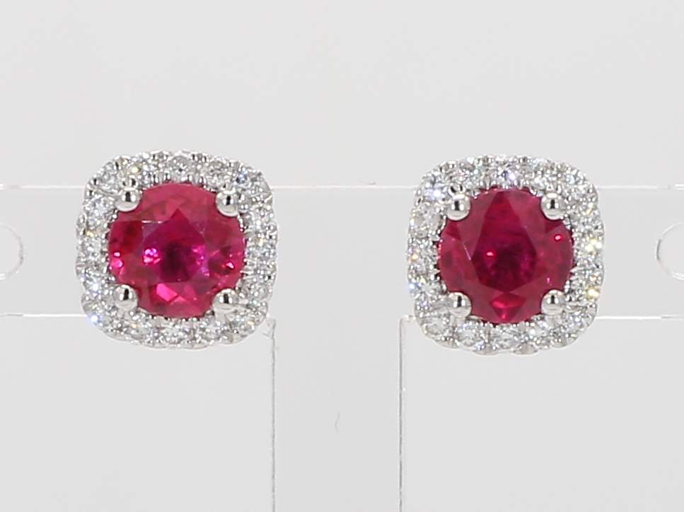 ROUND RUBY & ROUND DIAMOND 14KW EARRING