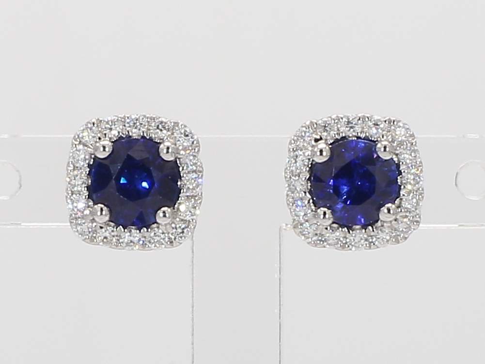 ROUND SAPPHIRE & ROUND DIAMOND 14KW EARRING
