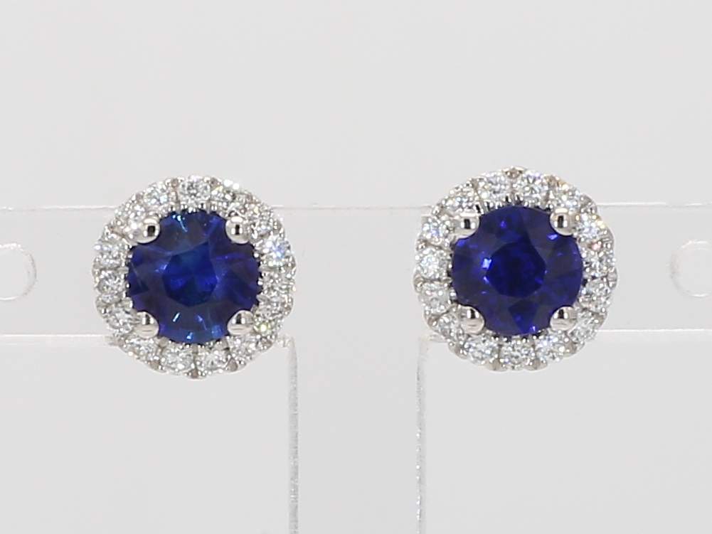 ROUND SAPPHIRE & ROUND DIAMOND 14KW EARRING