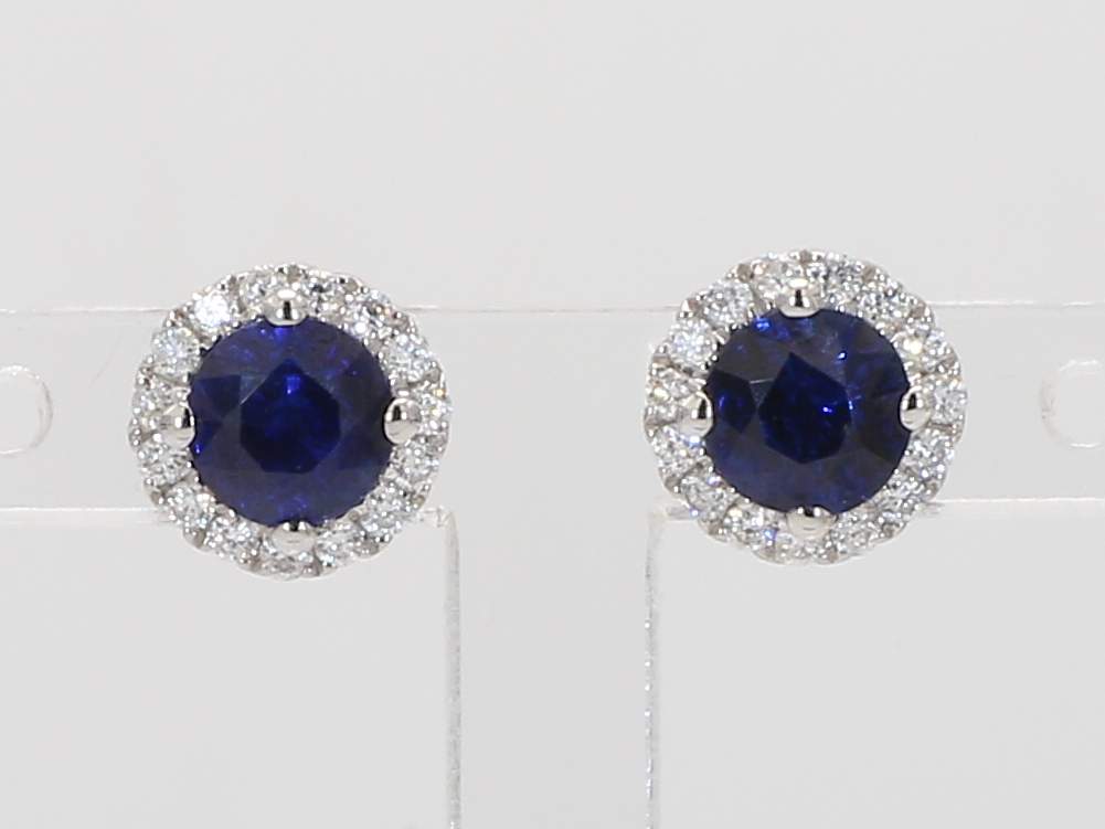 ROUND SAPPHIRE & ROUND DIAMOND 14KW EARRING