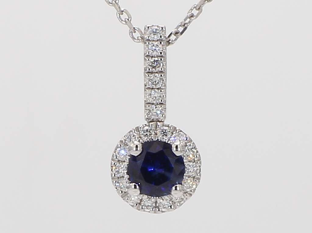 ROUND SAPPHIRE & ROUND DIAMOND 14KW PENDANT