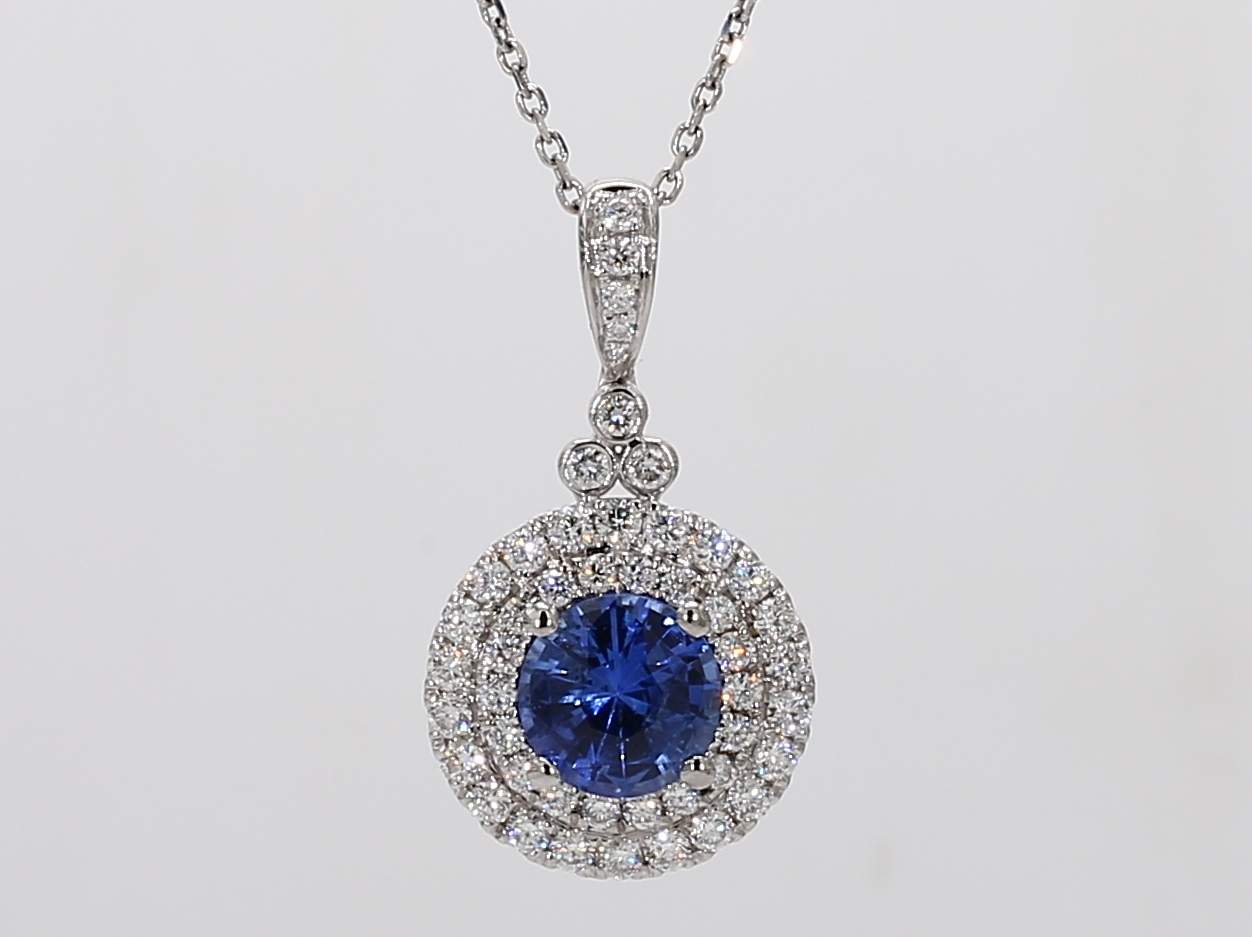 ROUND SAPPHIRE & ROUND DIAMOND 14KW PENDANT