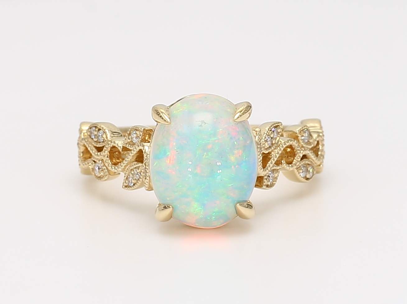 OVAL OPAL & ROUND DIAMOND 14KY RING