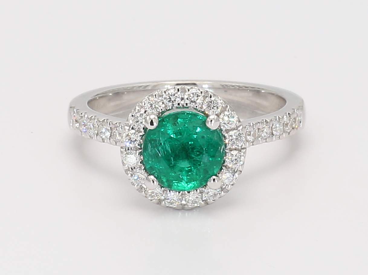 ROUND EMERALD & ROUND DIAMOND 14KW RING