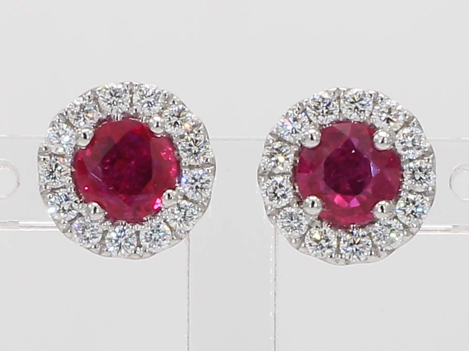 ROUND RUBY & ROUND DIAMOND 18KW EARRING