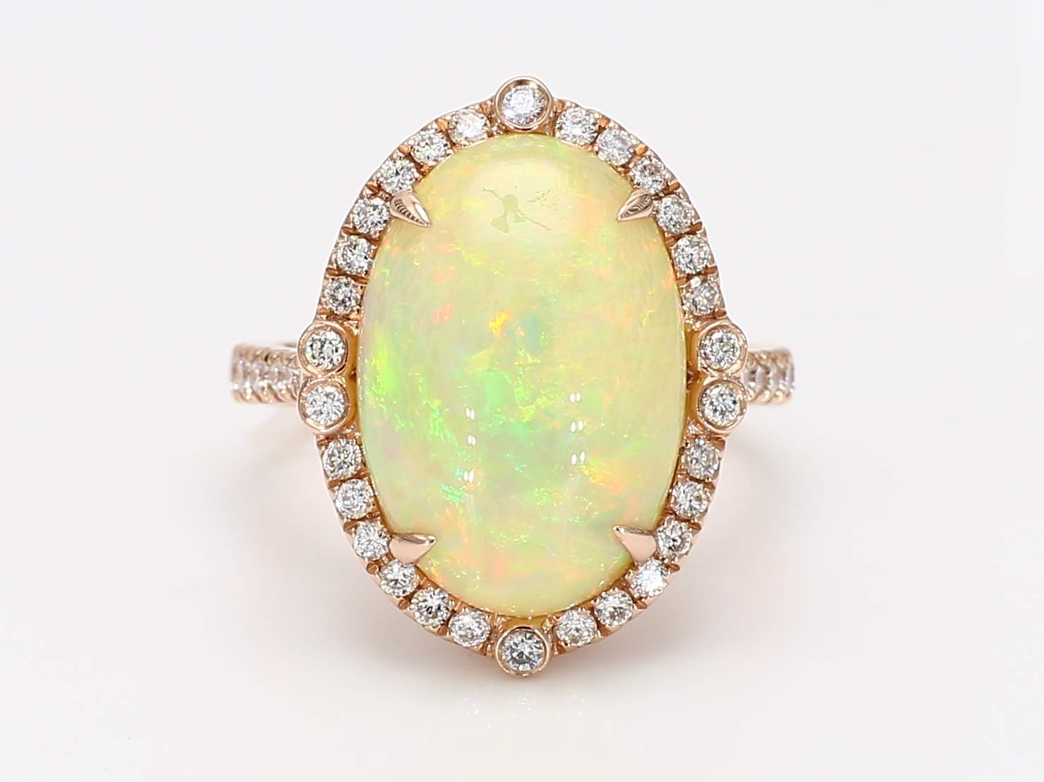 OVAL OPAL & ROUND DIAMOND 14KR RING